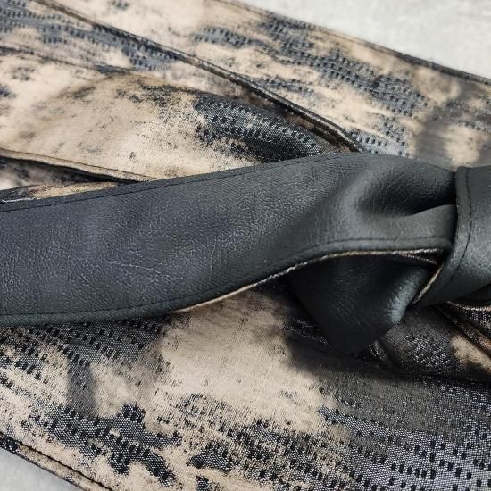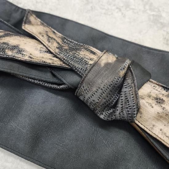 フロント部分を無造作に結ぶことでこのサッシュベルト帯の最大の特徴のフォルムが完成されます。